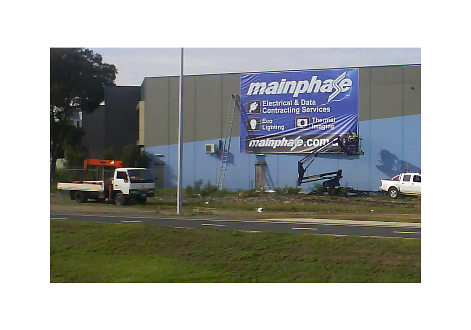 The large external sign can be easily seen from the busy M1 freeway in Port Melbourne - this banner utilises the visibility of the M1 and the large unused space at the back of the factory to send a strong marketing message.